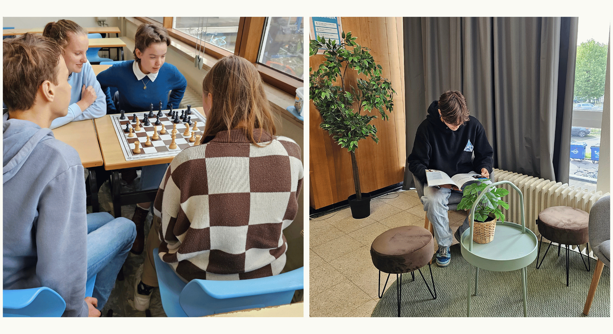 De Future Classroom is elke middag geopend. Je kan daar een strip of een boek lezen, rustig een taak maken of (in geval van nood) je Chromebook opladen.